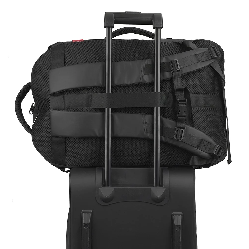 Mochila cabina apta como equipaje de mano, con 2 departamentos, organizador interno y acople a maleta. Fabricado en poliéster resinado y piel sintética, compuesto por un forro de alta calidad y un organizador interno.