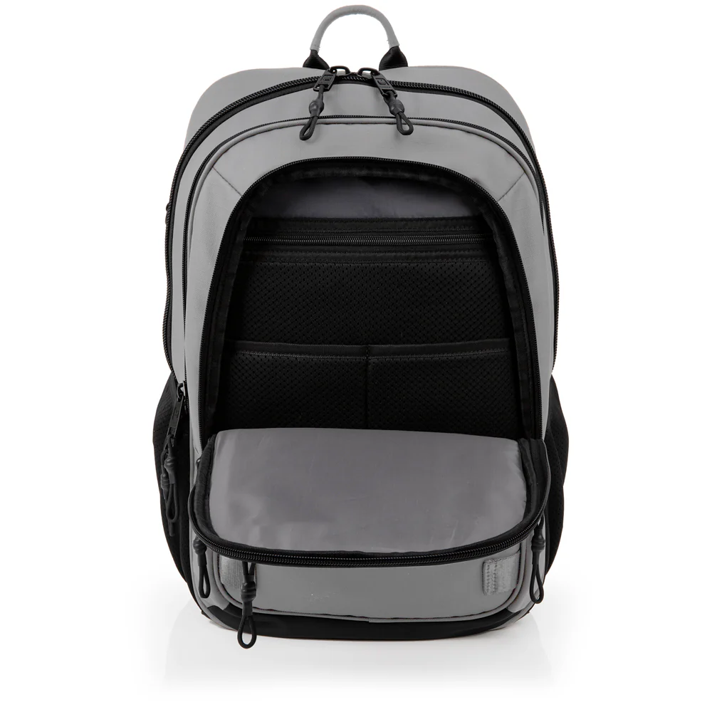Mochila de tres compartimentos con espacio para ordenador con 15,6" de la colección Disk, diseñada para acompañarte en tu rutina diaria con estilo y funcionalidad. Con capacidad de 25.5 litros y dimensiones de 33 x 47 x 19 cm, ofrece el espacio perfecto para llevar tu portátil y todo lo que necesitas en el día a día gracias a su organizador interno. Una compañera para todos los días y viajes, por su acople a maleta y su cinturón ajustable a pecho. Es cómoda para llevar gracias a su acolchado en hombreras y espalda. No pasa indiferente gracias a sus vivos reflectantes.